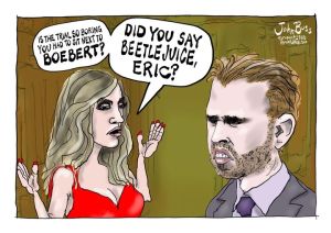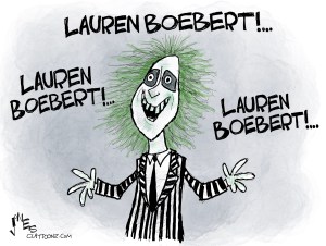 Speaking at a makeshift press conference outside the court, Boebert was heckled with chants of “Beetlejuice” — a reference to when she was thrown out of a Denver theater showing the film after vaping and apparently groping a male companion.