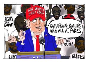 It was inevitable that the incredible crowds that the Harris/Walz appearances have been attracting would eventually impact Donald’s psyche. One of the first signs was the amount of disinformation being packaged by right-wing sites and news. The KKKult is falling for it. I even had to fact-check someone myself. I’ve never seen a group of more gullible people in my life. They’re even rehashing some of the crap they tried to pass in 2020. We’ve also seen poorly photoshopped pictures of crowds in Trump’s appearance, where the same obvious guys appear in four different stadium sections. We’ve now advanced to AI conspiracies.