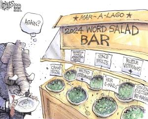 Trump set up a little grocery store at this “presser” where he told whopper after whopper. I love this headline from Vanity Fair. “Does Anyone Know What Donald Trump Is Talking About Anymore? Hannibal Lecter? Cheerios? “Bird cemeteries?” The former president is tying himself in a knot of discursive tangents and in-jokes that only makes sense to an increasingly small sect of the American public.”