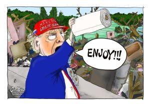 I remember Hurricane Katrina all too well and while I loved spending time with Anderson Cooper et al, I’d rather no one have to live through that again. So, why don’t we keep going with renewable energy, develop a workable immigration plan, and continue to fund a government that works for the people? I’m tired of seeing billionaires and grifting politicians get the goodies.