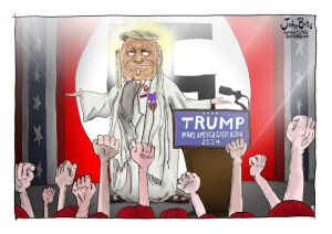 There was never any question that this rally was going to be anything but an attempt to inflame Trump’s base. The plan for a rally at Madison Square Garden itself deliberately evoked its predecessor: a Nazi rally at the old Madison Square Garden on February 20, 1939. About 18,000 people showed up for that “true Americanism” event, held on a stage that featured a huge portrait of George Washington in his Continental Army uniform flanked by swastikas.