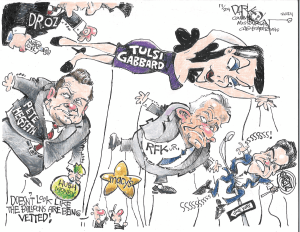 Gabbard’s longstanding association with a shadowy rightwing cult, her history of suspicious uses of campaign funds, her habitual conspiracism and advocacy for the interests of bloodthirsty dictators (including Syria’s Bashar al-Assad as well as Putin) all raise a multiplicity of red flags.
