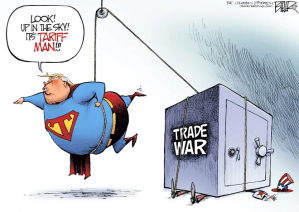 I’ve been running around with my hair on fire since the Orange Demon started obsessing about tariffs again. He tried them during his last Reign of Terror and nearly drove our farmers out of business. Congress had to rescue them with huge subsidies that paid them for not selling their crops or livestock. Trump started a Trade War with China. He needed a visit from Herbert Hoover’s Ghost and to listen to the huge chorus of economists who warned him, but he persisted. Luckily, it didn’t take out the U.S. economy, but it ran up the deficit and jeopardized the Agriculture sector.