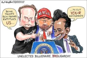 Evidently, since he managed to buy the US Presidency and dupe enough dolts into voting for the Dotard, he thinks he can do it with Canada and a good portion of Europe. He’s also being all kissy-face with the UK’s Nigel Farage. The AP characterizes all these shenanigans thusly. “Musk ascends as a political force beyond his wealth by tanking budget deal.” Is the legacy media going to sleep through all of this and cover it like mundane news? Thomas Beaumont has the analysis.