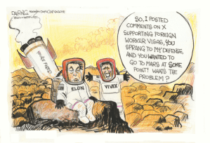 Meanwhile, we’re about to get steamrolled.  Noah Berlatsky at Public Notice has this analysis today, as the Vivek and Elonia comments on American workers hit them below their belts. “Trumpers discover a type of bigotry they oppose (against themselves). Vivek Ramaswamy gives MAGAs a taste of their own medicine.”