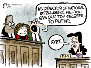 Former Democrat and military veteran Tulsi Gabbard, Trump’s pick to be director of national intelligence, was grilled about her past remarks supporting government whistleblower Edward Snowden as well as her relationships with Russian President Vladimir Putin and Syria’s former dictator Bashar al-Assad.
