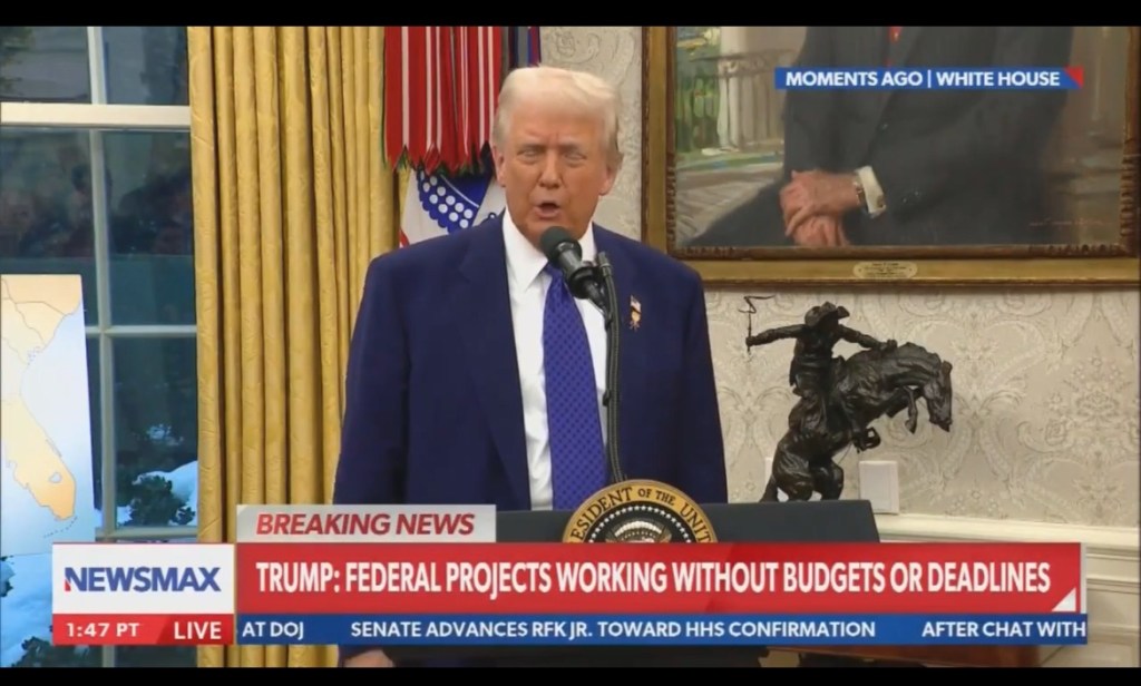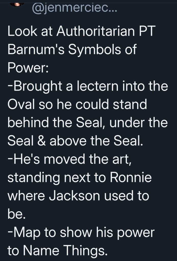 The orange turd brought a lectern with the presidential seal into the Oval Office to make comments today.