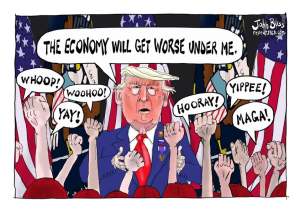 For all the brain poison MAGA propagandists pump into our information environment, these early signs of discomfort suggest they know the truth of the matter. Which means they’re conscious of the coming deception: they’ll blame Biden and foreigners and liberals and Jews for causing economic pain, and circle their wagons around Trump, fully aware of their own lies.