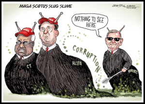 This will make an interesting case study in someone’s textbook. I may need to fire up the STATA and see what happens unless FARTUS and his merry band of poseurs soon suppress the GDP numbers. I wouldn’t put it past them, but I do believe some brave commerce department official will sneak them off to the Fed. Okay, this is too full of brilliant yellow prose for me to ignore. It comes via The Bulwark and Jill Lawrence. “The Road from ‘Citizens United’ to Trump, Musk, and Corruption. A ‘naïve’ Supreme Court delivered lawless greed and cruelty. We’ll have to save ourselves, if we can.”