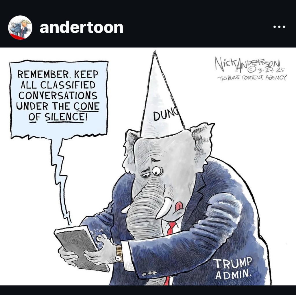 And yet Trump’s entire national security team — not only his National Security Adviser and his CIA Director and his Secretary of Defense, but also his Chief of Staff, his Secretary of State, his Vice President, his Director of National Intelligence, and others — did nothing as the entire team shared information about an upcoming and recently completed military attack, on Signal.