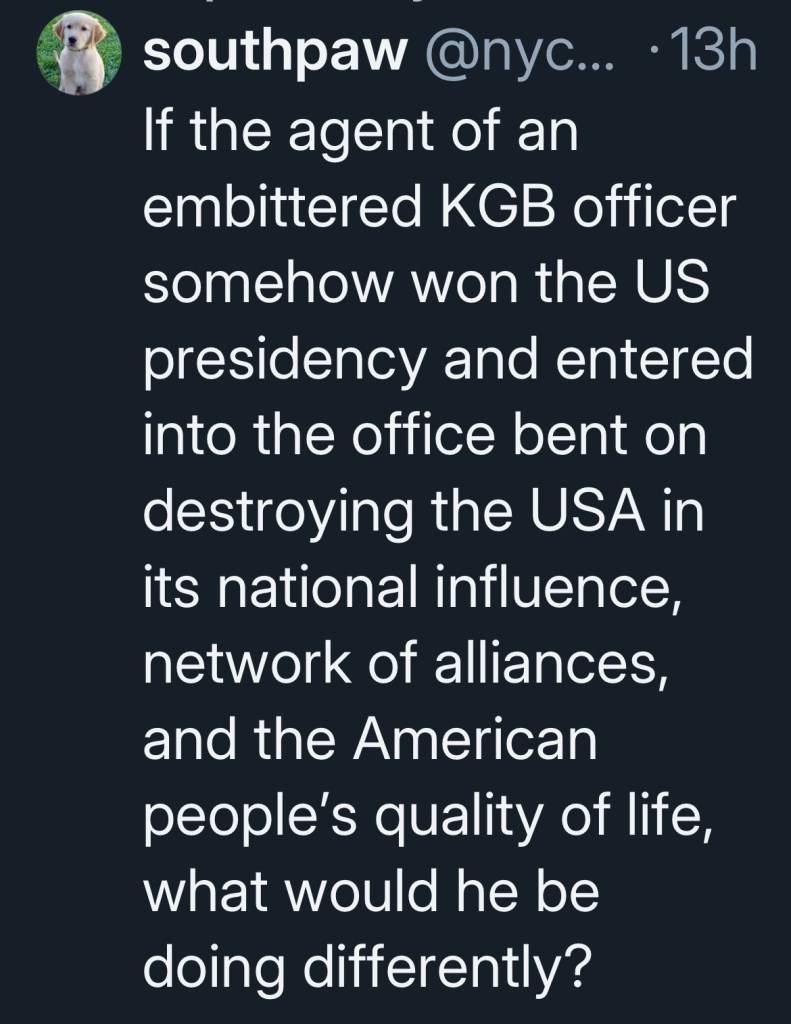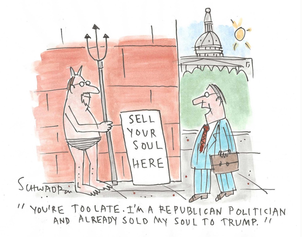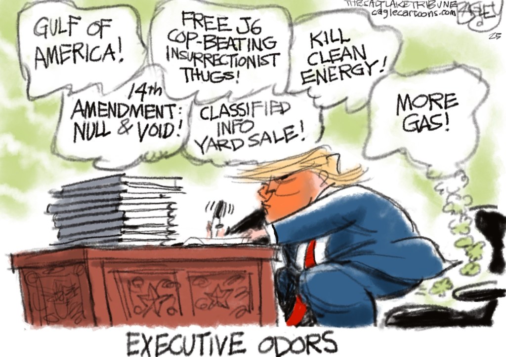 I have no idea how this country is going to get through 4 years of this. We have to, at least, turn the Senate and the House over to the Democratic Party just to stop him from doing these very stupid, unconstitutional, and under a different Supreme Court, illegal things.