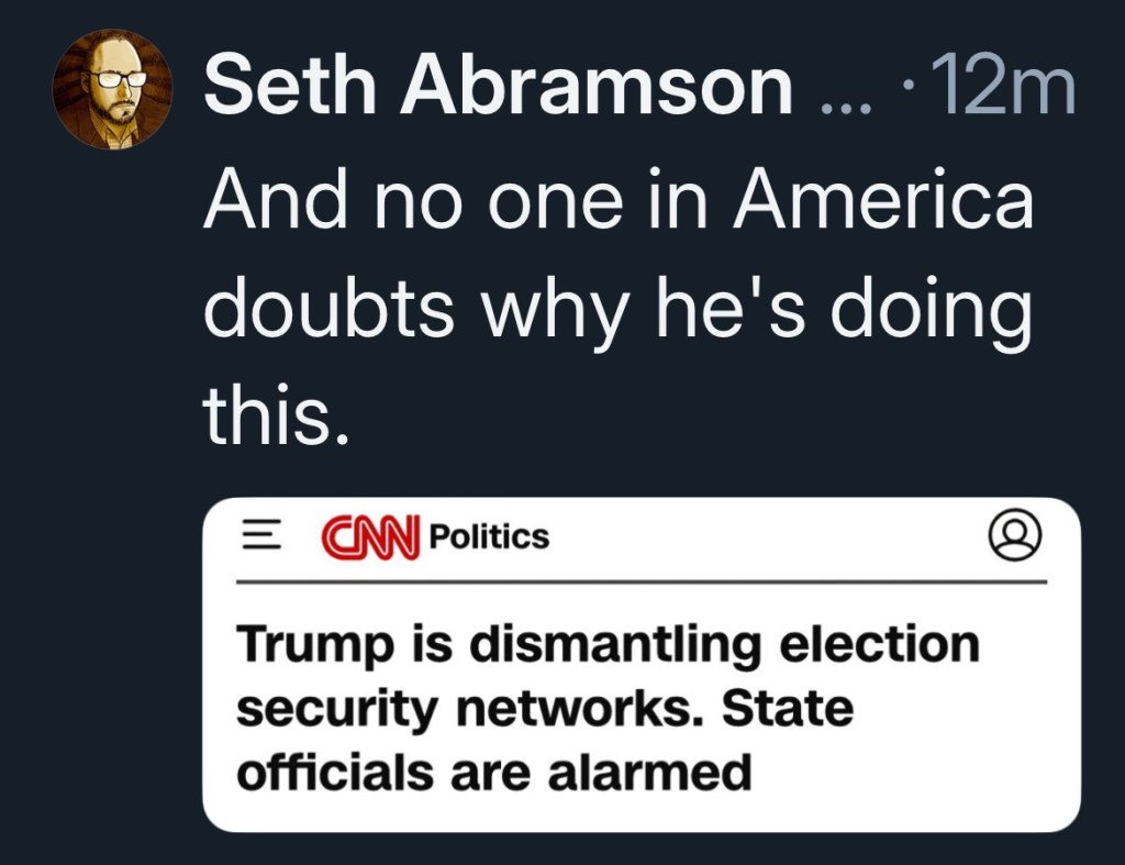 Trump signed an executive order calling for the DOJ to investigate Chris Krebs, who headed the Cybersecurity and Infrastructure Agency (CISA). All Krebs did was tell the truth about the 2020 election, including that voting machines didn’t flip votes.For that, he was fired and now investigated.