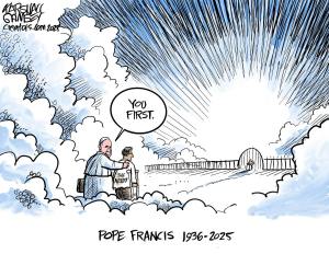 I imagine you’ve all heard that Pope Francis has exited the Earthly Door. I’m just sorry that one of the last faces he saw was that of J Dank. But maybe he wanted to give him a test after the Cardinal gave him a lecture on why deporting innocent people is not very Catholic of him.