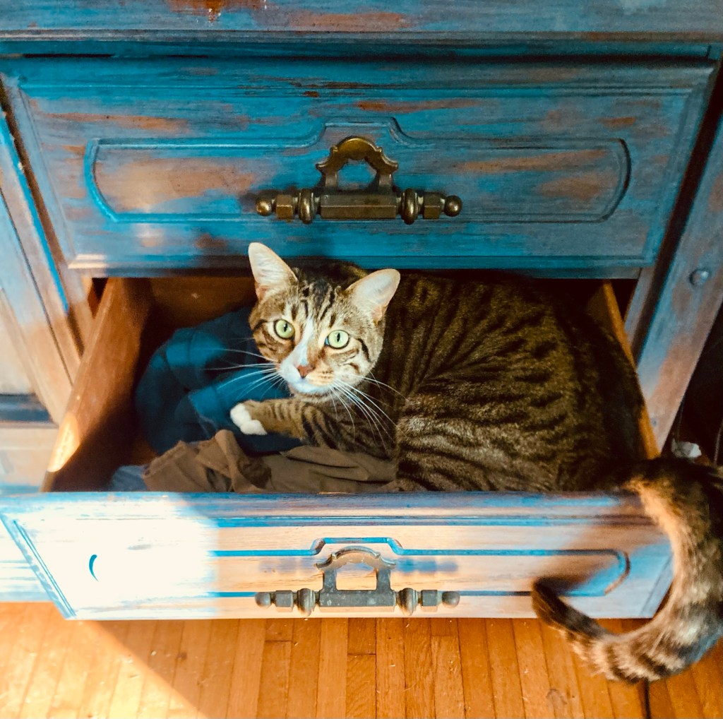 Next a couple of pictures of two of my cats…Cooter is in the drawer and Cletus is in the litter box: