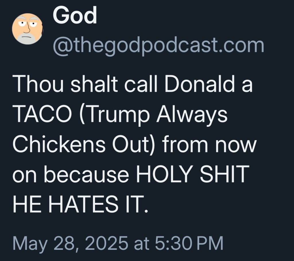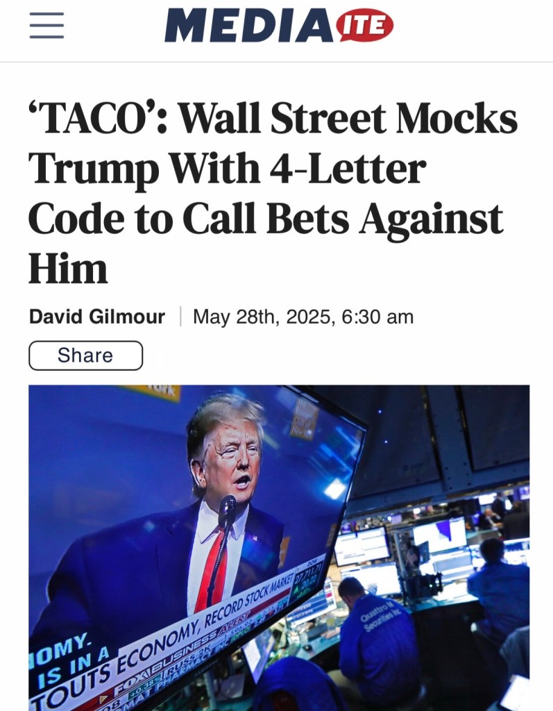 Isn’t it interesting that the recent blub about Trump is calling him Taco Trump?