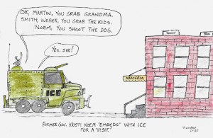 Today, we have the NACHO Queen (Noem Always Chickens the Hell OUT). This is from the Daily Beast. It’s one thing to chase criminals. It’s another to run a high-priced kidnapping ring to chase down children and their hard-working parents. “ICE Barbie’s List of ‘Sanctuary’ Cities Yanked After Furious Backlash. The pro-Trump National Sheriffs’ Association had called the list “arbitrary” and a betrayal.”