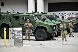 the administration’s crackdown on day laborers in the city sparked a predictable response from the community, which immediately rallied to their defense. Initially hundreds but soon thousands of residents went to the streets in what have been mostly peaceful protests, despite the police use of tear gas, flash-bang grenades, rubber bullets and other so-called less lethal armaments. But there has been property damage in the form of burned-out cars and broken windows. And this damage, along with a few instances of looting, is the president’s pretext for a military crackdown.