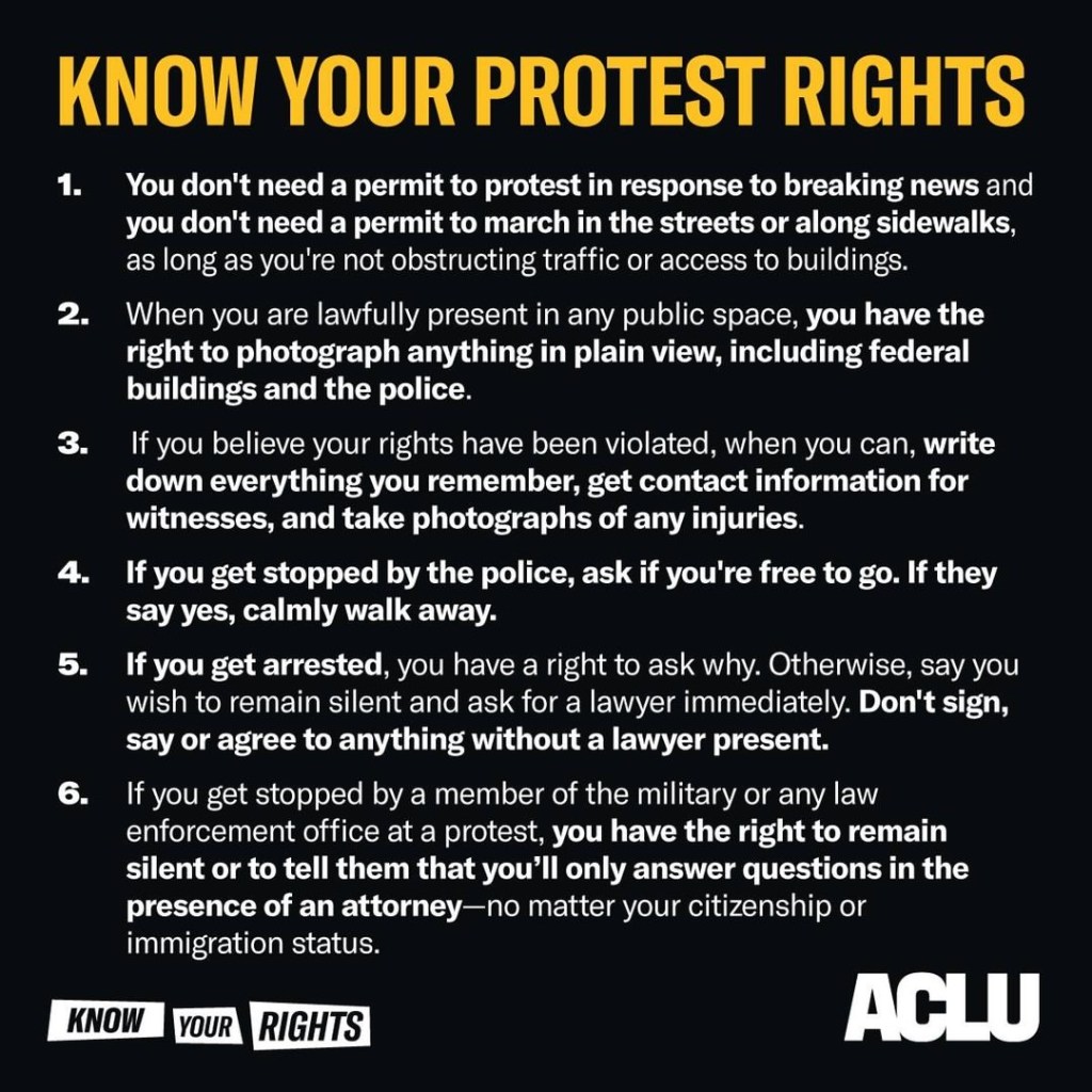 Repost: @aclu_nationwide If you’re protesting this weekend, know your rights when interacting with law enforcement, including immigration agents.