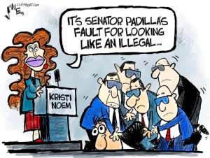 Sen. Padilla found himself at the center of a maelstrom when he tried to ask a question Thursday at Noem’s briefing on ICE protests in Los Angeles and was brought to the ground and handcuffed by Secret Service and FBI agents. Noem and her agents falsely claimed Padilla didn’t identify himself as a U.S. senator and accused him of “lunging” in a threatening manner.