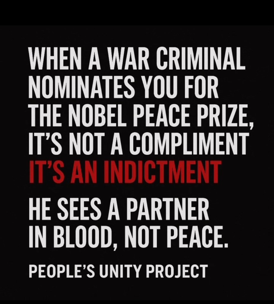 Something tells me that war criminals recommending Trump for Nobel Prize is something that isn’t going to fly! It is telling though.