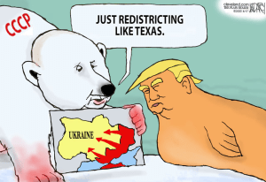 Andrea Mitchell has just stated that President Zelenski is wearing a suit. Our embarrassing President is welcoming him and, of course, mentions his fetish partner, Putin. He’s thanking Yam Tits. I guess Zelenski got the message JD Dank sent him last time. And Trump’s calling Putin’s attack on Ukraine as “Biden’s War.” The man just can’t keep himself from lying. Here’s some perspective on the Trump/Putin bromance event last week in Letters from an American.