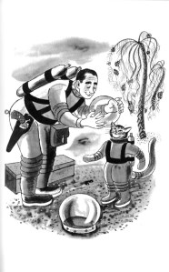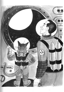 Flyball the Space Cat is back, and this time he’s living in Luna Port, the first city on the Moon. Workers at the lunar station are building a rocket to transport him and his pilot buddy, Colonel Fred Stone, to Venus. The two friends take a long voyage to the planet, where they encounter violet skies, torrential ammonia rains, and strange plants that can communicate without speaking.