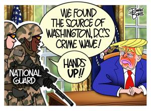 Trump has seized control of the police force in Washington and is allowing National Guard troops to carry weapons while on patrol in the city. He is also threatening to expand the U.S. military presence to Democratically-controlled cities like Baltimore and Chicago.