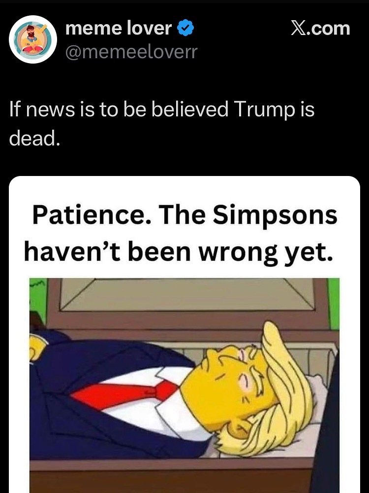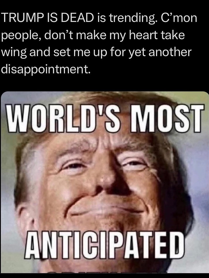 It’s Sunday, and the rumors of Trump’s death sadly were just that…rumors.