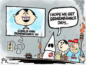 Posted: September 22, 2025 | Author: dakinikat | Filed under: #FARTUS, #MAGAnomics, #We are so Fucked, kakistocracy | Tags: @johnbuss.bsky.social John Buss, Charlie Boy Kirk hate speech, Defend the democracy, Donald Trump's Big Pirate Adventure, John Buss @repeat1968, Trump Team Grift and Incompetence |6 Comments