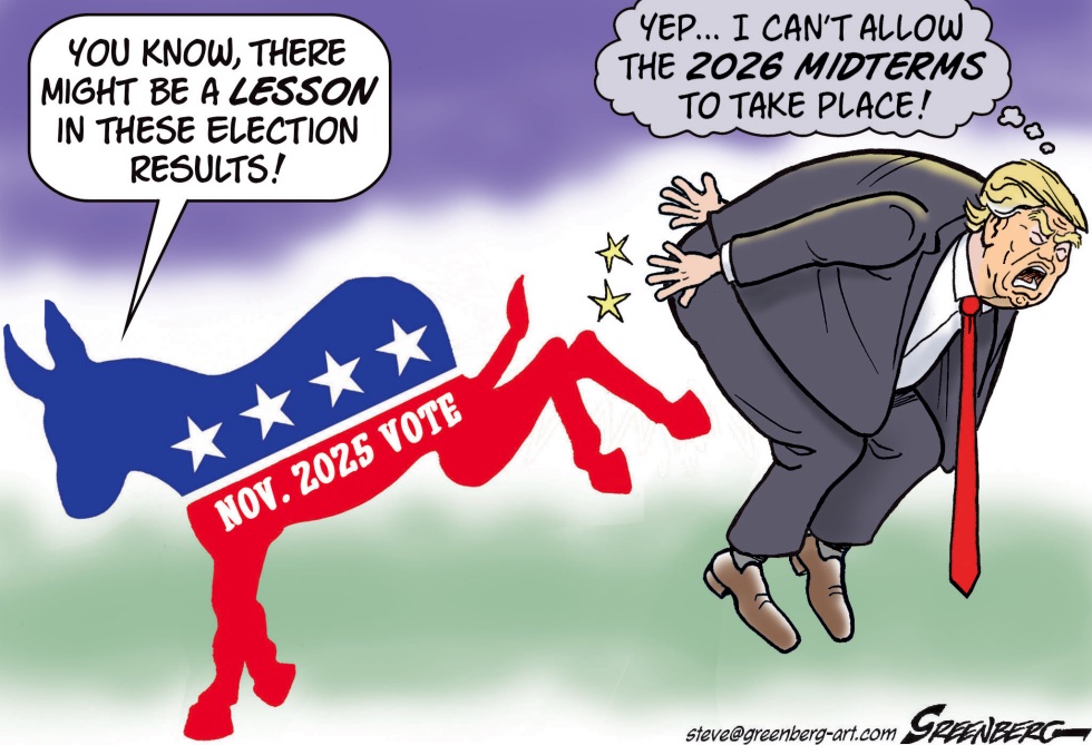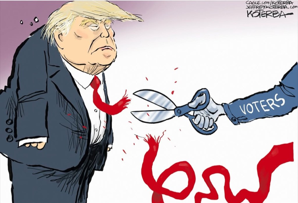 Meanwhile here in the states, our own pussy grabber got fisted on Tuesday…and the cartoonists are having fun with it: