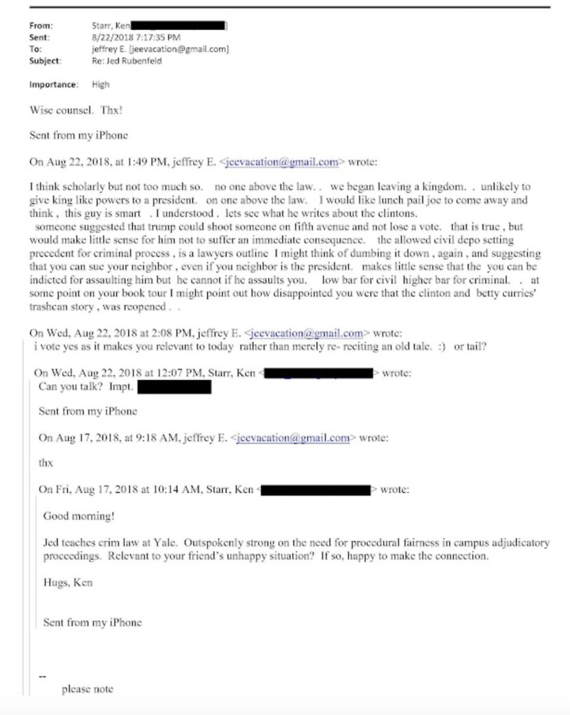 That is Ken Star singing an email to Epstein with the word “Hugs”…Just remember: