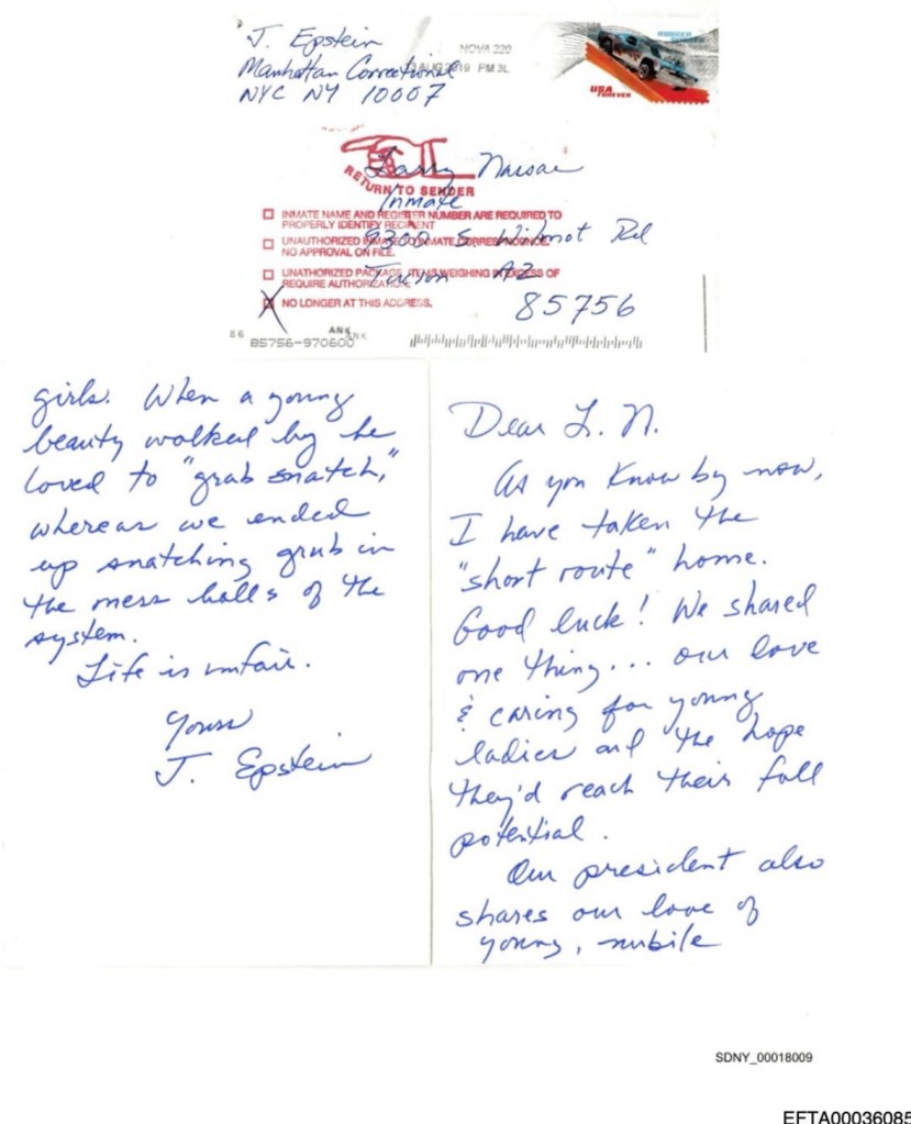 Postmarked August 13, 2019, Epstein died August 10, 2019