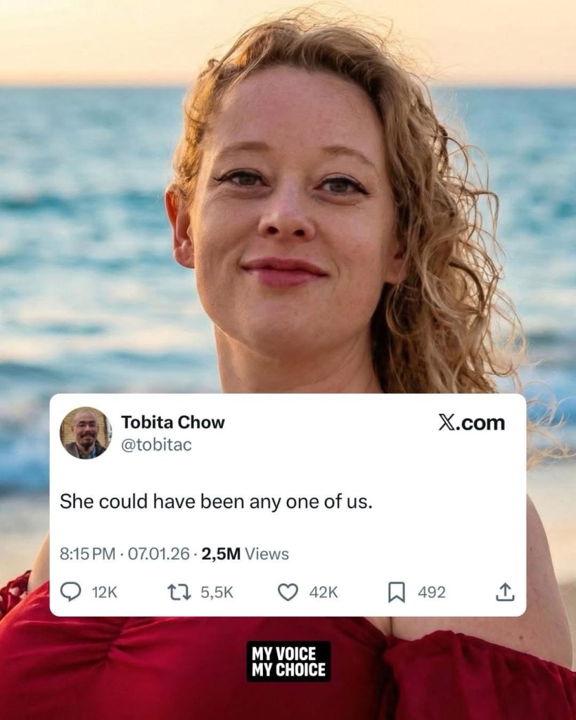 This is a sign from the NYC protest against the murder of Renee Good, it reads: