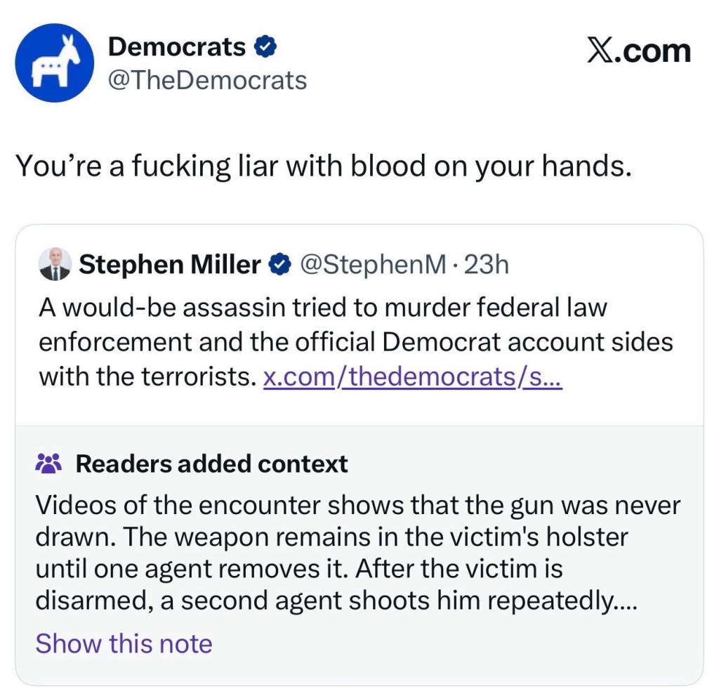 It started with this piece of shit saying you’re taking your life in your own hands if you call ICE members…Nazis.