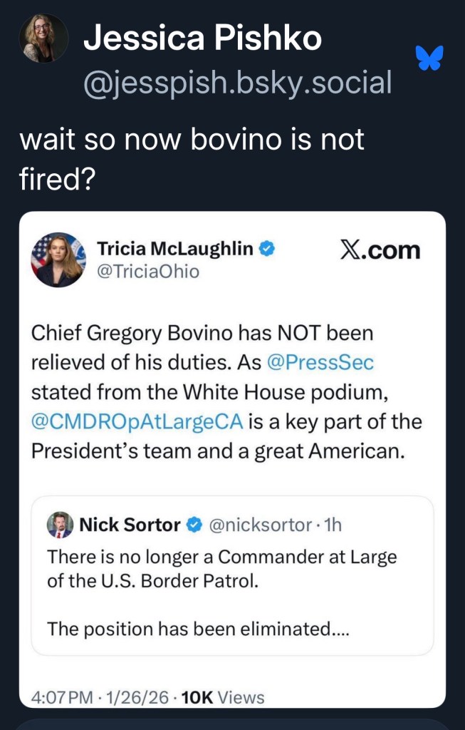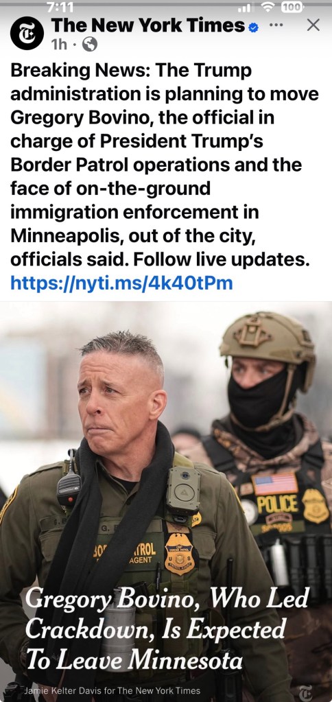 Bovino is taken out of Minnesota. Well, supposedly he will be taken out. He has not been fired by the way…