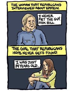 So, yesterday, Hillary Clinton testified in a closed session about her complete lack of a relationship with Epstein, which she framed as a basic waste of everyone’s time and money. She stated that, to her knowledge, she’d never even met the guy, then told them to ask Bill. Meanwhile, we’re getting more calls for an investigation into Trump’s obvious associations. This headline from Bill Sher writing at the Washington Monthly says it all. “It’s Time for the Media to Press Trump on Allegations of Abusing a Minor. The president should be scrutinized with the same intensity as others in the Epstein Files.”