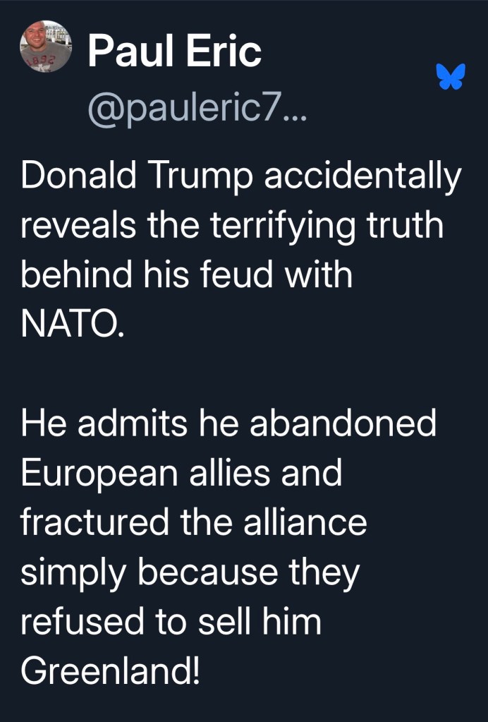 Trump: NATO is a paper tiger now… it all began with Greenland, we want Greenland. They don't want to give it to us. And I said, bye bye.