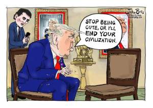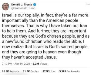Posted: April 20, 2026 Filed under: Afternoon Reads, Foreign Affairs, U.S. Politics | Tags: Cadet Bonespur's Iran War, Dementia Donald Trump, Drunk Kash Patel, Insider Trading Pete Hegseth, Iran War, Trump Toadies 2 Comments