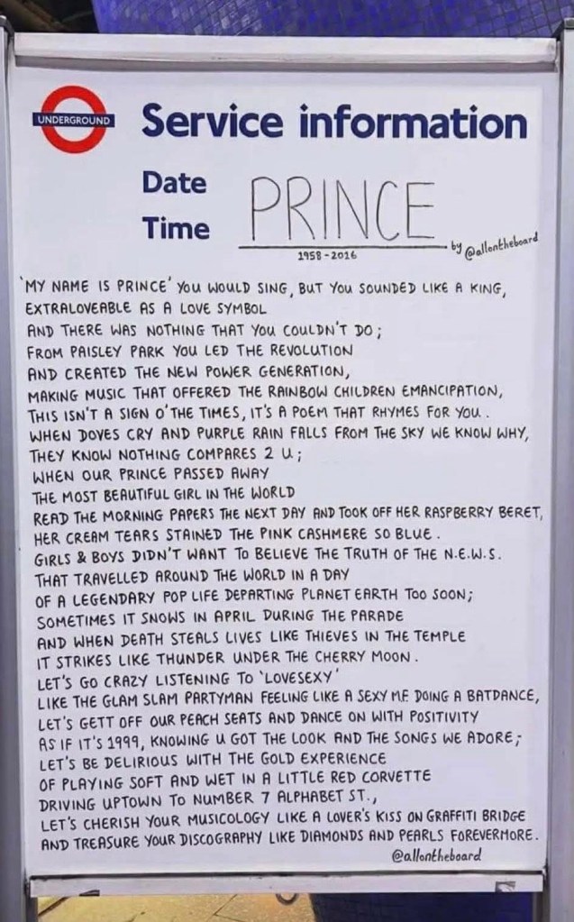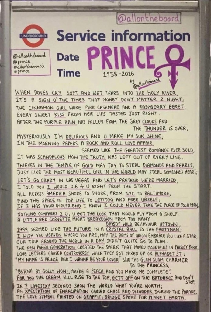 The picture above was taken by my daughter, Bebe, while she was in New York City during the days Prince died a decade ago. Here are a few more: