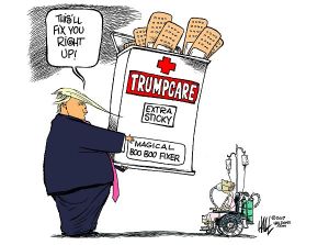 Having run a campaign during which he promised to cover everyone, protect Medicaid from cuts, and replace Affordable Care Act plans with “terrific” coverage, Donald Trump is now behind a bill that cuts Medicaid, covers fewer people, and allows states to replace ACA plans with stingier coverage. Having promised repeatedly to protect patients with preexisting health conditions from insurance market price discrimination, Paul Ryan is pushing a plan that removes existing protections and replaces them with hand-wavy and inadequately funded high-risk pools. Having leveraged public discontent with high deductibles and rising premiums, Republicans are pushing a bill that will leave most patients with higher out-of-pocket costs for equivalent plans and bring back skimpy plans with even higher deductibles.