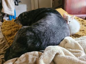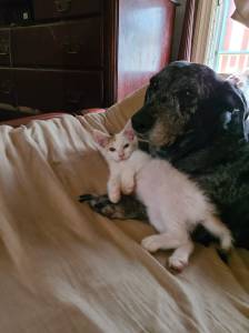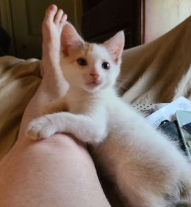 This is Kristal. She was three weeks old and riddled with fleas when we cleaned her up and started bottle feeding her. Temple adores her. She’s healthy and active now!