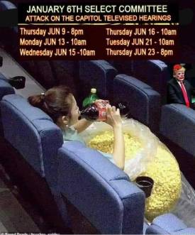 It’s going to be an interesting week as we start the January 6 committee’s public hearings on the insurrection on Thursday evening. The times are listed in EDT to the left of the headline. NBC asks the big questions: “The Jan. 6 committee begins hearings with a big challenge: Capture public attention. Whether the public hearings will be considered a success for Democrats largely depends on what comes after and whether legislation or prosecutions follow.”