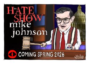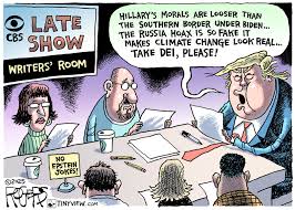The Mediate article is worth reading.”Fox News Correspondent Warns Colleagues Not to Celebrate Trump’s FCC for Targeting The View: Next Administration ‘Could Do the Same’ to Fox.” This story comes from the desk of Joe DePaolo. You will notice that there is no shortage of political cartoonists weighing in on the topic. We are all South Park now.