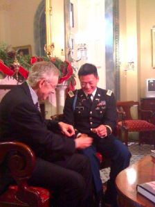 The guests at the ceremony included Joe Solmonese, head of the Human Rights Campaign, a gay rights group; Vice President Biden; Rep. John Conyers Jr. (D-Mich.); and Dan Choi, a former U.S. Army soldier who was discharged under “don’t ask, don’t tell” and was arrested in November after chaining himself to a White House fence to protest the policy.