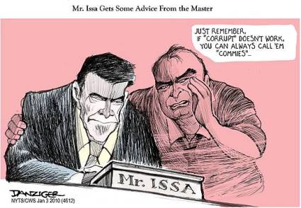 Bostonboomer and I were perusing information on the Issa panel and committee on religious freedom and birth control yesterday. Their expert witness panel appeared to be a mix between the Salem Witch Trials and the Spanish Inquisition. Where were the women on this panel? Is this really our government? What’s going on in Torquemada’s–errr Issa’s–realm of influence these days? BB has already regaled us on the crooked career and life of Issa whose business and career seems built on insurance fraud, car theft, and arson, so I won’t go there. We have a whole tag dedicated to him that’s infinitely googleable. However I will express my utter surprise and contempt that a committee of the US House of Representatives and its web page seem to be more of a propaganda tool of right wing tropes than anything remotely informative or helpful. Issa appears to be the Republican Party’s budding little combination of Goebbels and Himmler.
