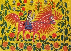 Mariia Pryimachenko: The Autumn Riding on a Horse (1984).