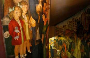 Because all 27 Coit Tower murals were painted at the same time, in 1934, they presumably were meant to be seen as a whole. Now that all the murals have undergone the most intensive restoration in their history, an effort is being made to get people up there, but only in groups of four to eight, and only as part of a docent tour.