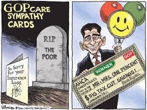 That’s all happening because the GOP is committed to rolling back the taxes that pay for the Affordable Care Act, delivering a financial windfall to high-income families even though Treasury Secretary Steve Mnuchin swore at his confirmation hearings that the Trump administration would not pursue tax cuts for the rich.