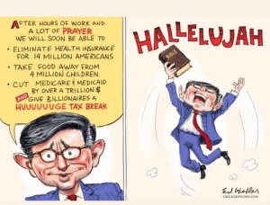 Fuck you you ungawdly poor people! And women! And children once you get past the viability point in the womb we don’t care about you either! And any one unfortunate to ever have been sick before or born sickly!!!