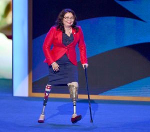 Tammy Duckworth, Candidate for the US House of Representatives walks off stage after her speech to the Democratic National Convention at the Time Warner Cable Arena in Charlotte, North Carolina, USA, 04 September 2012. Duckworth was a helicopter pilot who lost both her legs in combat injuries in Iraq. US President Barack Obama will be nominated to run for a second term at the convention. EPA/TANNEN MAURY